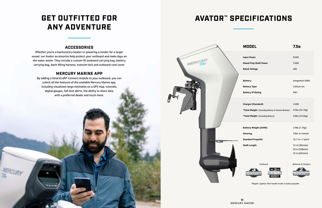 | MODEL | Mercury Avator 7.5E Electric Outboard |