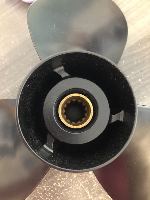This listing is for a like new aluminum 3-blade propeller with dimensions 11 1/8" diameter x 13" pitch. The brand is unknown, but the propeller shows minimal to no signs of use, and is in excellent, like new condition.